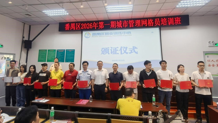 番禺区就业训练中心举办第二期城市管理网格员证书颁证仪式
