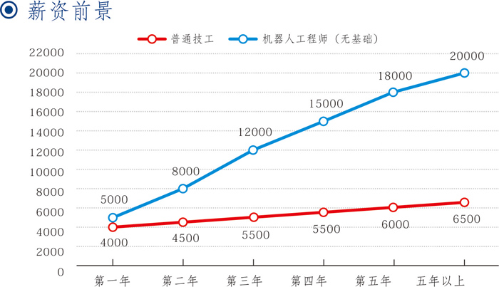 未来5~8年,以工业机器人为主的“智能制造”人才缺口高达450万,企业急需懂得操作现代化智能设备又熟悉生产工艺的专业技能人。
